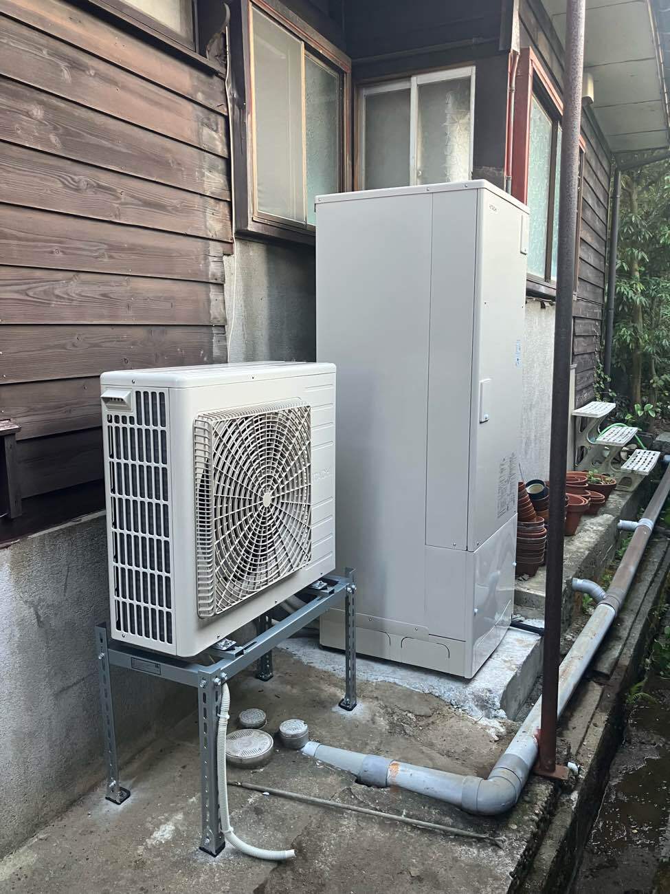 お風呂でゆっくり温まりたいこの時期に合わせて、電気温水器からエコキュート(フルオートタイプ)への交換を行いました。
