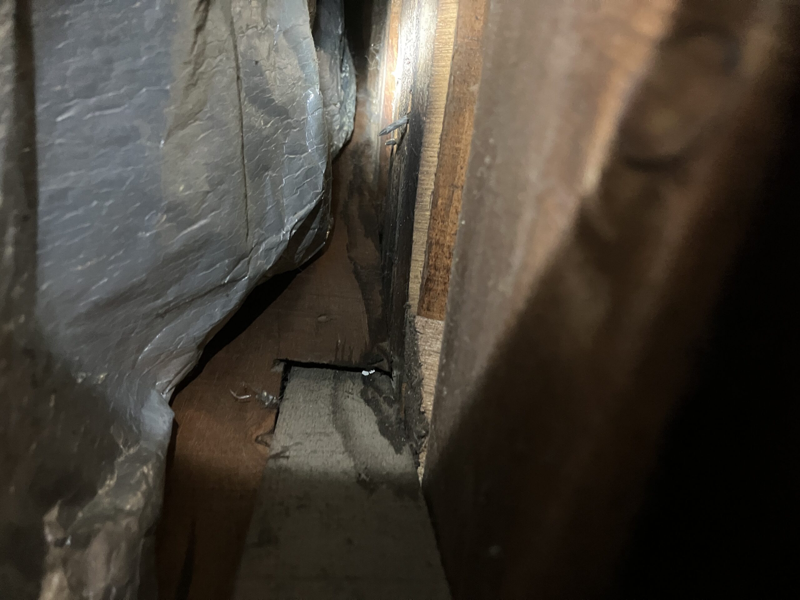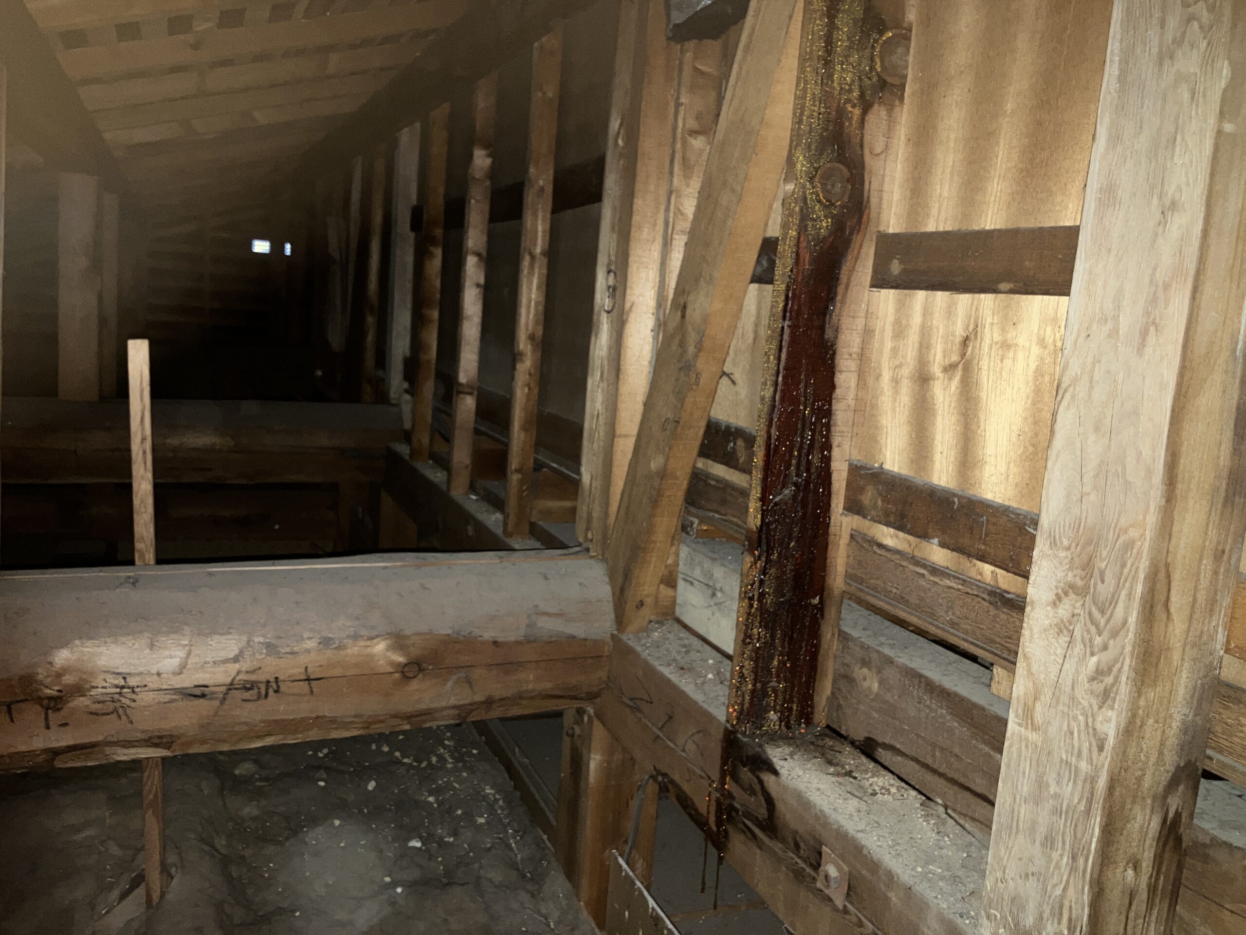 これはヤニが表面に浮き出ているのと、長年の水の浸水によって黒く変色してしまいました。