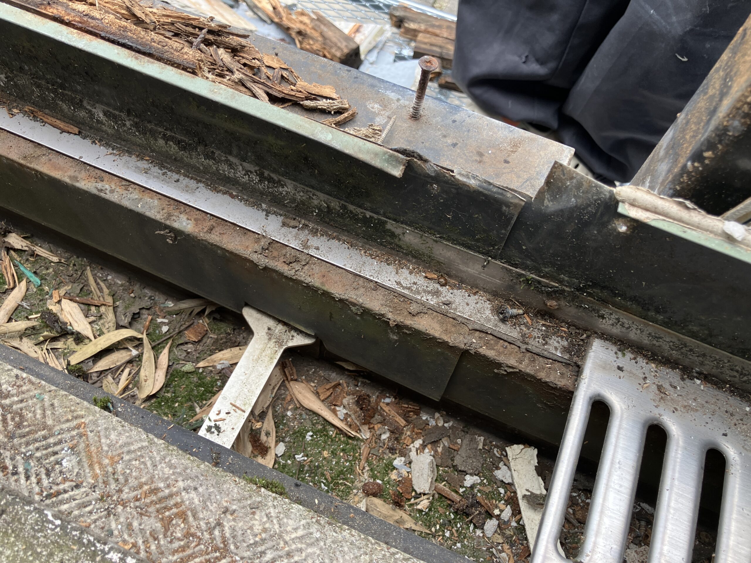 ↑手摺の下の木部ですが、手でボロボロと取れるぐらい腐食していました。