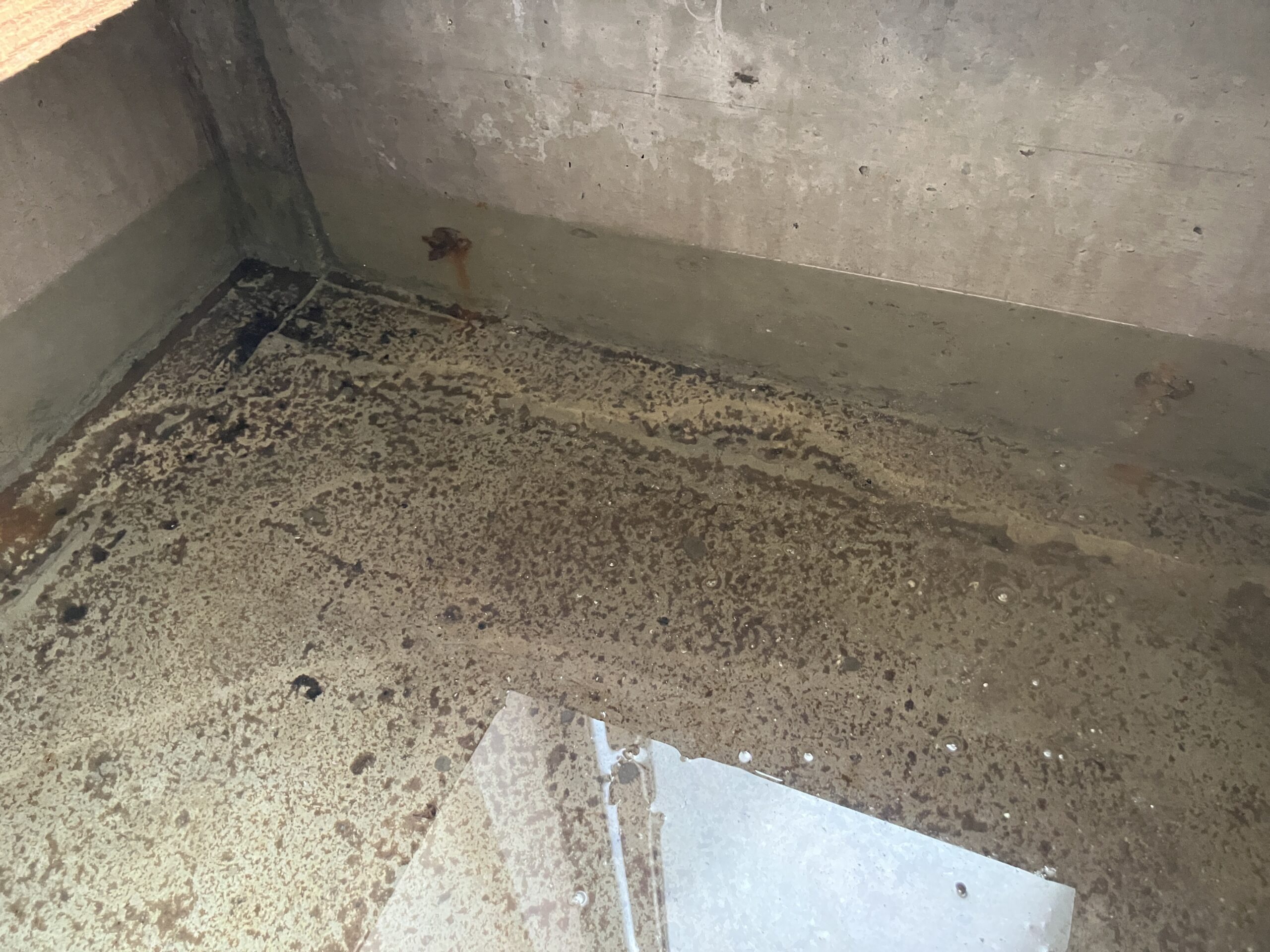 床下の点検口がなかなか開かず、ようやく空いたとも思ったら床下がプール状態でした。