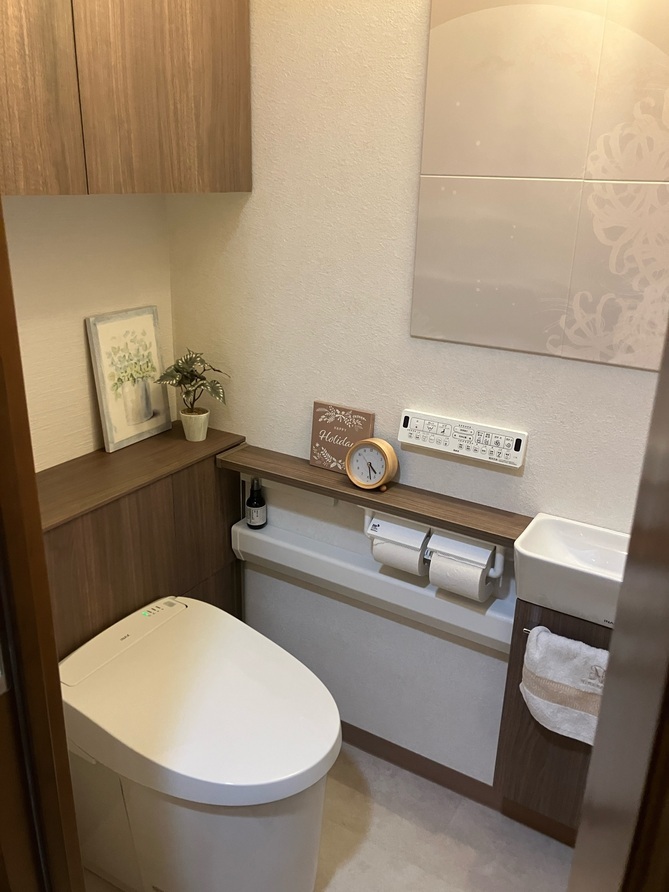 既存のトイレは年数が経っており、使い勝手と見た目の両方を良くしたいというご要望から、今回のリフォームをご検討いただきました。あわせて、空間全体をおしゃれにしたいとのことで、内装も一新しています。